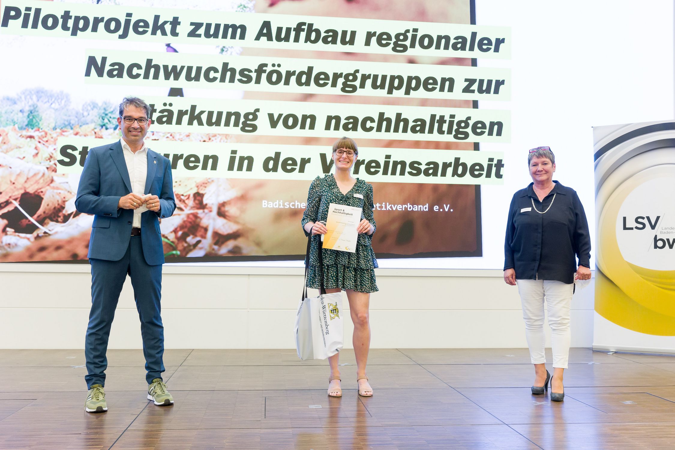 Bei der Preisverleihung am Mittwoch, 21.07.2021 in der Sparkassenakademie Stuttgart nahm die kommissarische Geschäftsführerin Saskia Diel den Preis für den BLV entgegen. Überreicht wurde die Urkunde sowie ein Präsent von Elvira Menzer-Haasis, Präsidentin des Landessportverbandes Baden-Württemberg, und Dr. Andre Baumann, Staatssekretär im Ministerium für Umwelt, Klima und Energiewirtschaft.