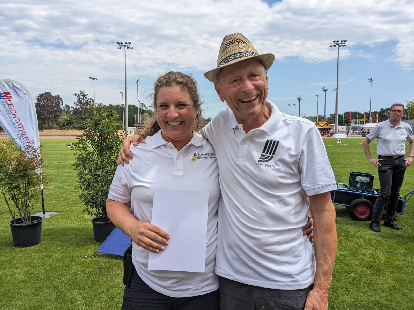 Für ihre langjährigen Verdienste in der Leichtathletik wurden zudem Bernd Hefter und Georg Zwirner mit der goldenen DLV-Ehrennadel geehrt. Bernd Hefter engagiert sich seit vielen Jahren als Stadionsprecher im BLV sowie im SCL Heel Baden-Baden. Georg Zwirner bringt sich als Fachwart Schulsport in die Schülermentorenausbildung sowie als Verbandstrainer Mehrkampf in die Verbandsarbeit ein und ist zudem als Trainer in der LG Region Karlsruhe engagiert.