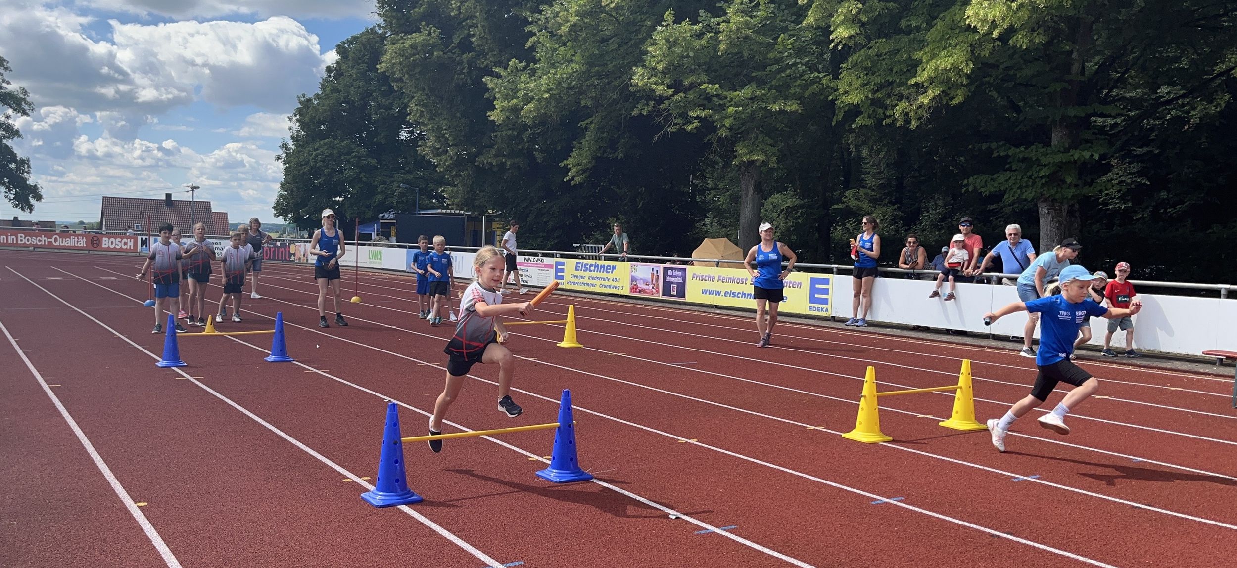 Mit Sonnenhut, Wasserflasche und jeder Menge Motivation im Gepäck ging es für die jüngsten Leichtathletinnen und Leichtathleten des LAC Essingen und des Partnervereins TSG Hofherrnweiler-Unterrombach zum landesoffenen Sportfest nach Giengen. Und obwohl die Sonne erbarmungslos vom Himmel brannte, war von Zurückhaltung keine Spur – stattdessen hieß es: Vollgas geben für den Sparkassen-KiLA-Cup Ostwürttemberg 2025!