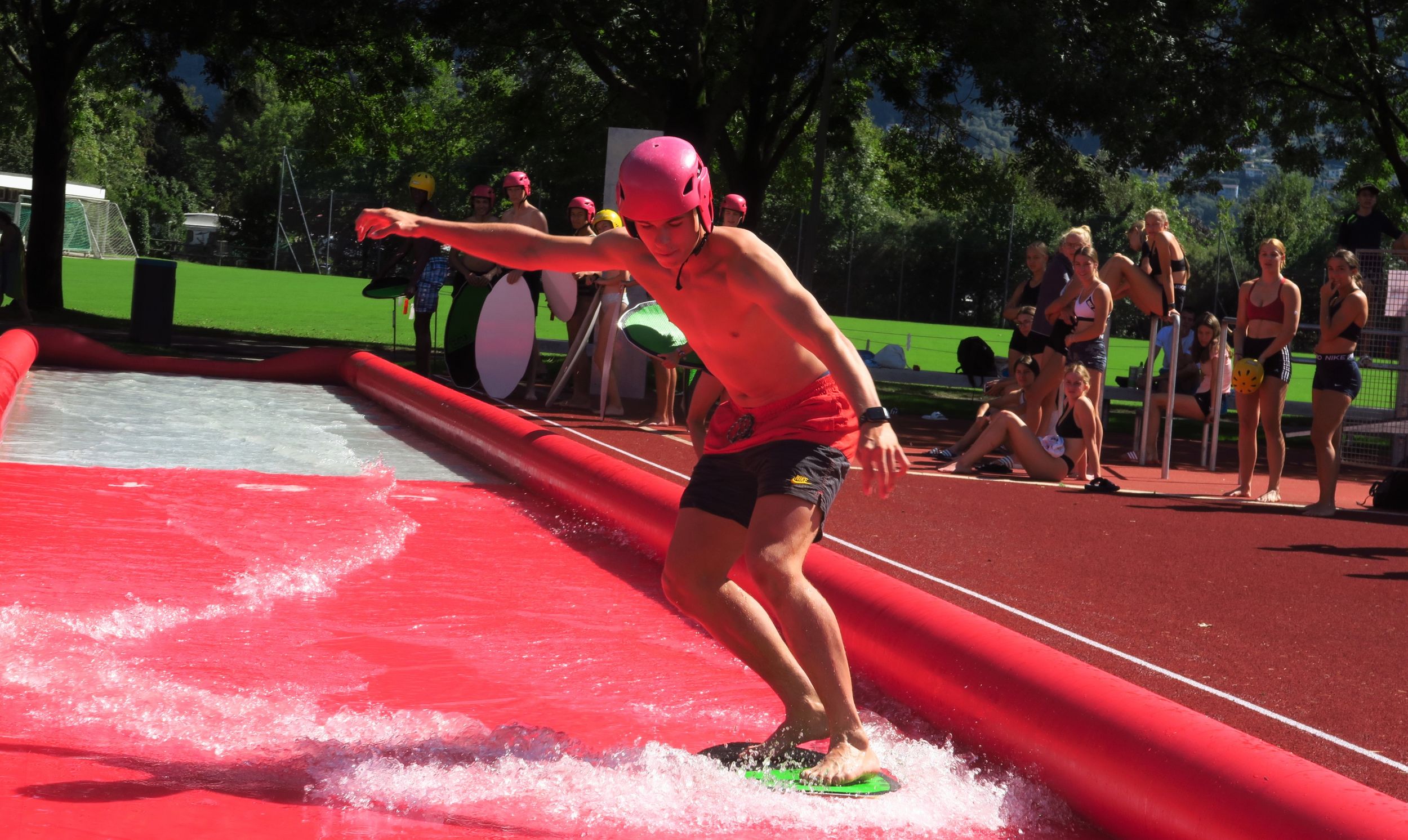 Am nächsten Morgen war der Spuk dann aber vorbei, so dass die aufregende Sportwoche weitergehen konnte, die hier mal fast vollständig alphabetisch genannt sei: Aqua-Fit, Basketball, (Extreme-)Camping, Disc-Golf, Extensive Tempoläufe, Fußball, Gewichtheben, Hip Hop, Jogging, Kletterpark, Lauf-ABC, Mountainbike, Orientierungslauf, Paddeln, Rugby, Skimboard, Tennis, Ultimate Frisbee, (Beach-)Volleyball, Wandern, XYZ (in der Küche). Es war also immer was los. Zwischendurch wurde auch mal fürs Wochenturnier unter Leitung von Kevin Tepe gespielt, das am Ende erstmals und laut Landestrainer „völlig überraschend“ die Läufer/innen für sich entschieden.