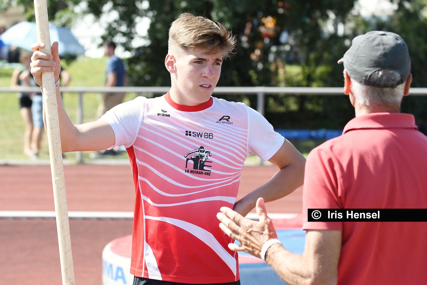 Zwei Titel im Stabhochsprung gingen an die LG Neckar-Enz. In der Altersklasse M15 siegte Finn Breitkreutz mit einer Steigerung auf 4,15 Meter. Seine Vereinskameradin Joy Kessler machte es ihm in der Klasse W15 nach, sie holte sich den Titel mit übersprungenen 3,45 Meter.