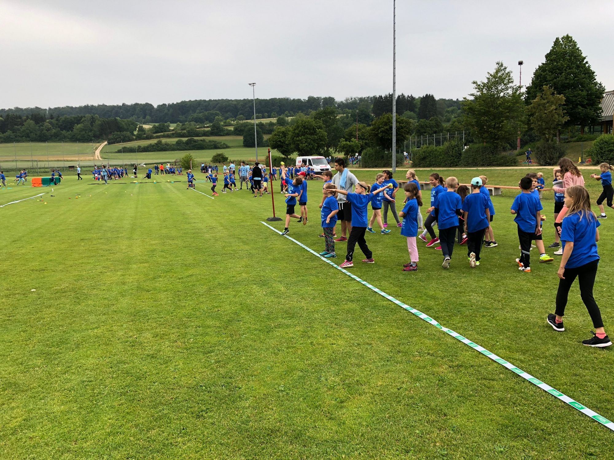 Nachdem alle Helfer und die rund 330 Kinder von der Grundschule Zang, Seebergschule Söhnstetten und Hillerschule mit blauen T-Shirts von der AOK und weiteren Projektsponsoren ausgestattet waren, begrüßte sie Herr Rieberger in seiner Funktion als stellvertretender Bürgermeister. "Heute geht es für euch vor Allem darum, Spaß zu haben!", betonte er. Damit hat er ein Ziel von WLV Kinderleicht-Athletik VOR ORT genau richtig erfasst. Projektleiter und Bildungsreferent des Württembergischen Leichtathletik-Verbandes Rene Stauß erklärt: "Heute wird nichts gestoppt, gemessen oder aufgeschrieben. Die Kinder sollen Spaß an der Leichtathletik finden und neue Bewegungserfahrung sammeln."