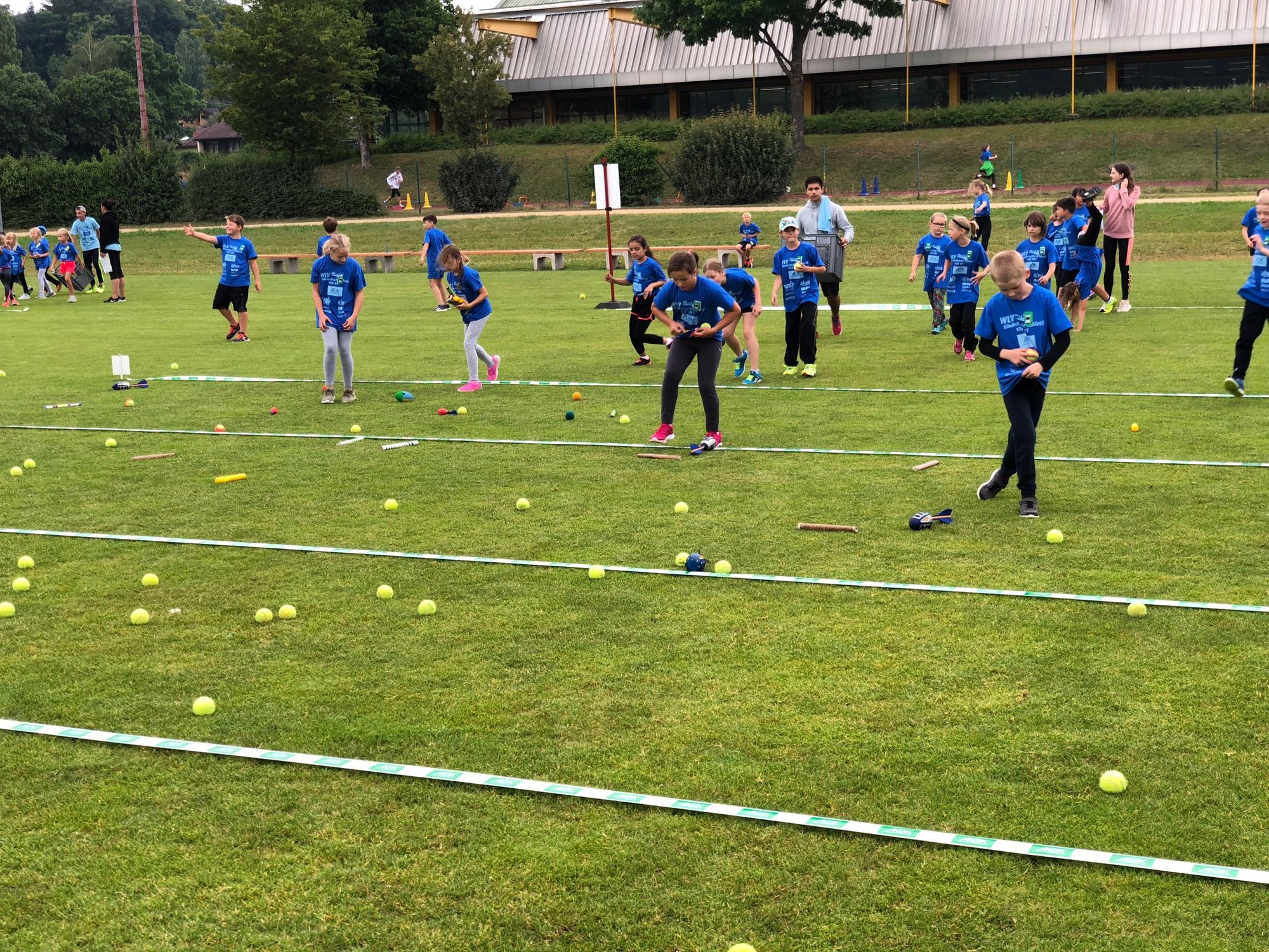 An der Station "1-2-3, dann fliegt das Ding" ist das Ziel, mit unterschiedlichen Wurfgeräten, wie zum Beispiel Tennisbällen, Wurfstäben oder Wurfheulern so weit wie möglich in Wurfzonen zu werfen. Besonders motiviert waren die Kinder nach der kurzen Wurf-Vorführung von Ex-Zehnkämpfer Rene Stauß bei der Sache. Er ließ den Wurfheuler unter tosendem Beifall über den gesamten Sportplatz fliegen und sorgte damit für viele bewundernde Blicke.