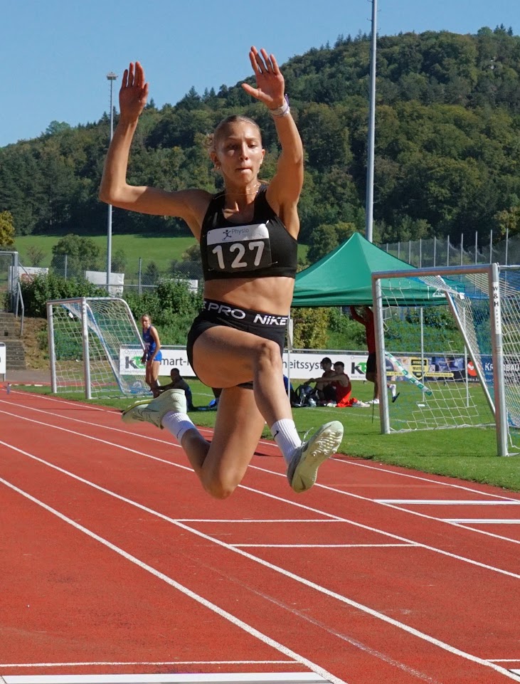 Und der wusste die Top-Bedingungen mit tollem Spätsommerwetter zu nutzen: Lokalmatador Justin Hopfensitz (TSV Oberkochen) steigerte sich bei seinem Dreisprungsieg um über einen Meter auf 13,34 Meter und rückte ebenso in die DLV-Top 3 auf wie Sina Stoll (TB Tailfingen), die den Hochsprung mit 1,70 Meter für sich entschied. Im Weitsprung verbesserte sich die ein Jahr jüngere Teresie Hess (SG Schorndorf 1846) auf 5,58 Meter und holte sich souverän den Sieg. Das gelang auch der deutschen Meisterin Mara Dümmler (VfL Sindelfingen), die nach übersprungenen 3,30 Meter gleich aufs Ganze ging und erst an der neuen deutschen Jahresbestleistung von 3,60 Meter scheiterte. Ebenfalls zwei Sprungsiege holten sich die Jungs: Hannes Klecker (SSV Ulm 1846) dominierte den Weitsprung mit 6,30 Meter, Henri Massing (MTV Stuttgart) lag im Hochsprung mit 1,82 Meter vorn. Während die Württemberger in den technischen Disziplinen überall vorn mitspielten, gelang das im Sprint und Lauf kaum. Lediglich mit Hürden gelangen zwei Erfolge: Luke Schmidt (SpVgg Holzgerlingen) holte sich in 11,30 Sekunden die Kurz-, Nina Sippel (LG Neckar-Enz) in 47,55 Sekunden die Langhürden. Sehr gut schlug sich die erstmals gelaufene 4x 800 Meter-Mixed-Staffel, die den stimmungsvollen Abschluss bildete: Nachdem Pitt Wanninger als Schlussläufer noch mal zu Bayern aufgeschlossen hatte, hatten die Weißblauen aber auch hier die Nase vorn.